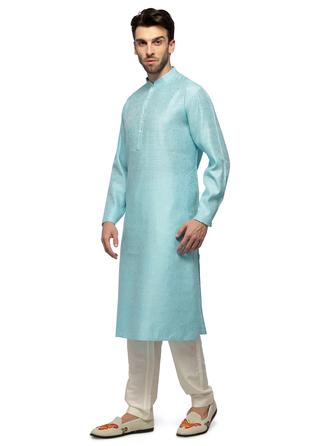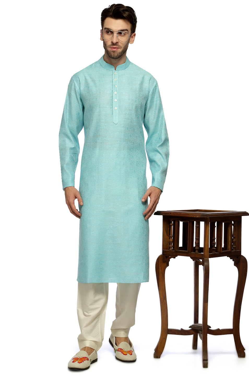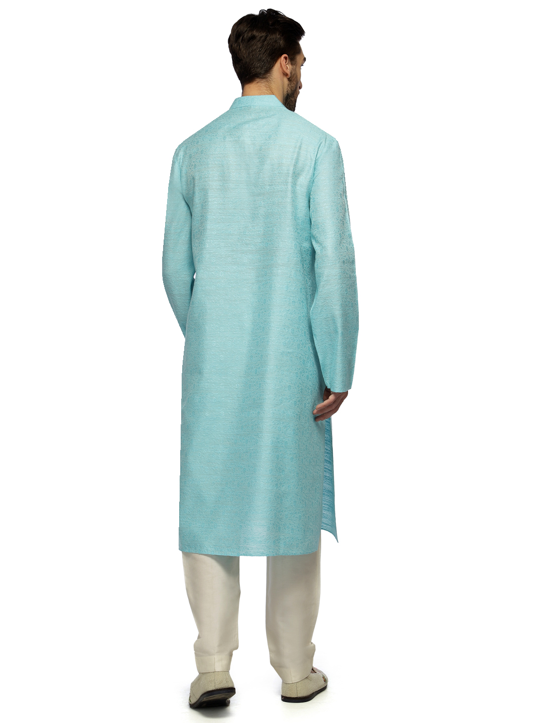 Teal Traditional Kurta Churidar in Textured Emb. Tailored to Perfection in Cotton Silk , Cool Summer Look and Fabric.