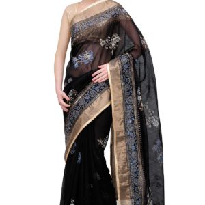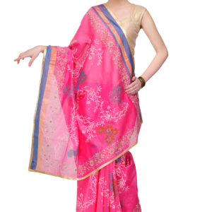Chanderi Aari embroidered handcraft Indian Wear saree for all Occasions along with Satin Unstitched Patticoat and Chanderi Unstitched Blouse.
