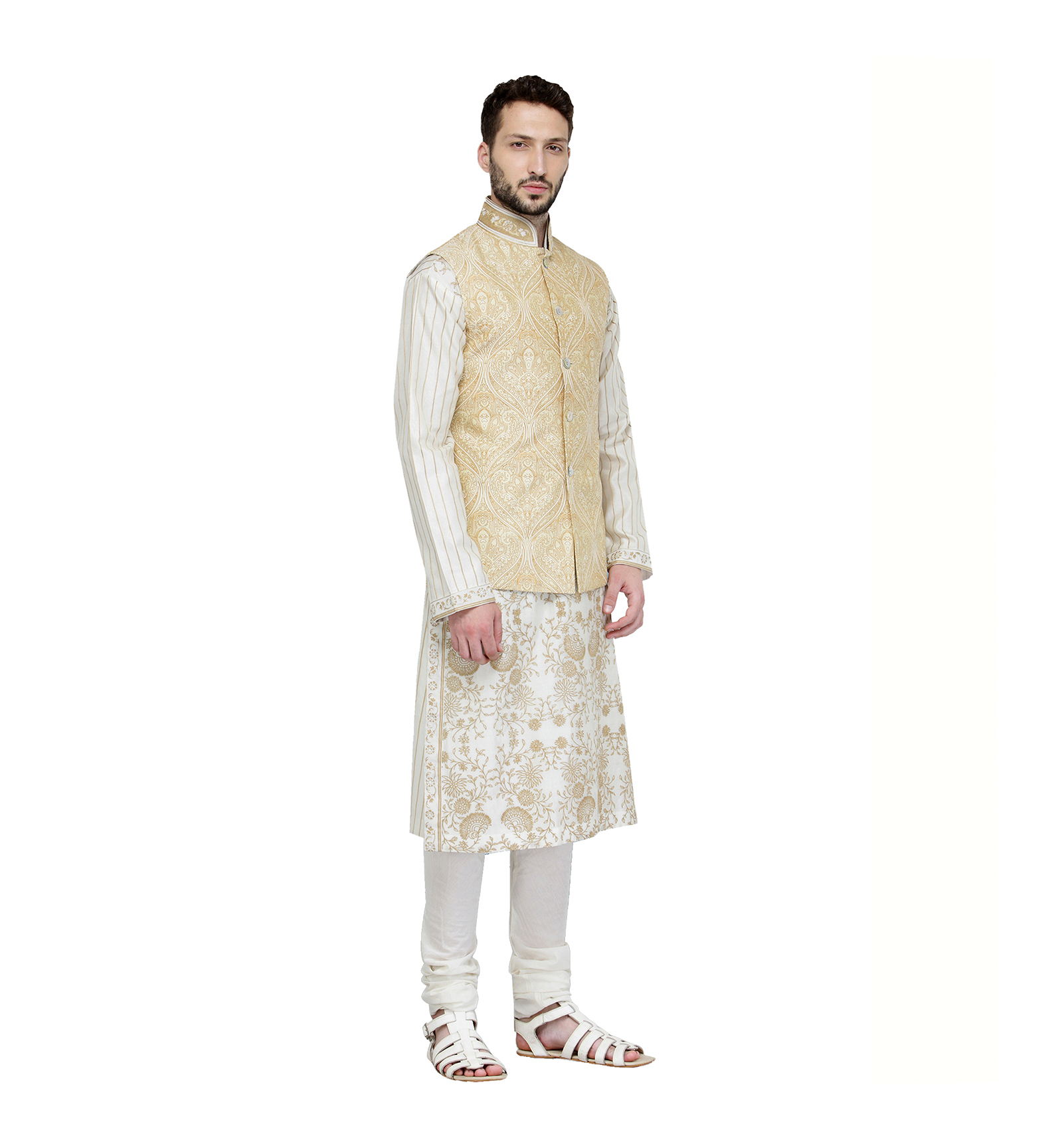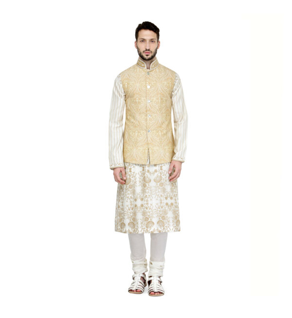 Printed Mens Waistcoat with Emb. Collar in Fine Katan, for a Perfect Traditional Occasion.