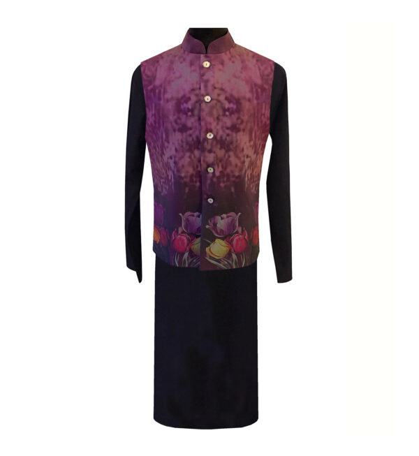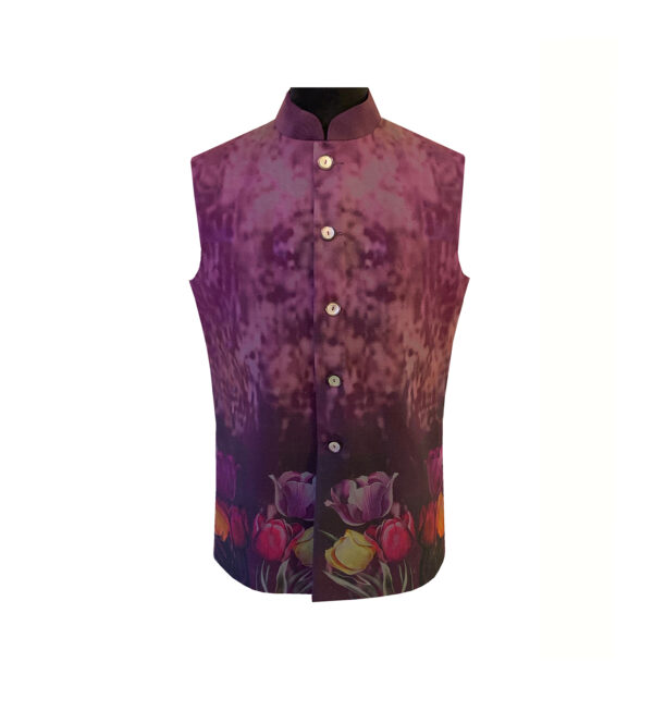 Floral Digital Printed Mens Waistcoat in Cotton Khadi, for a perfect occasion.