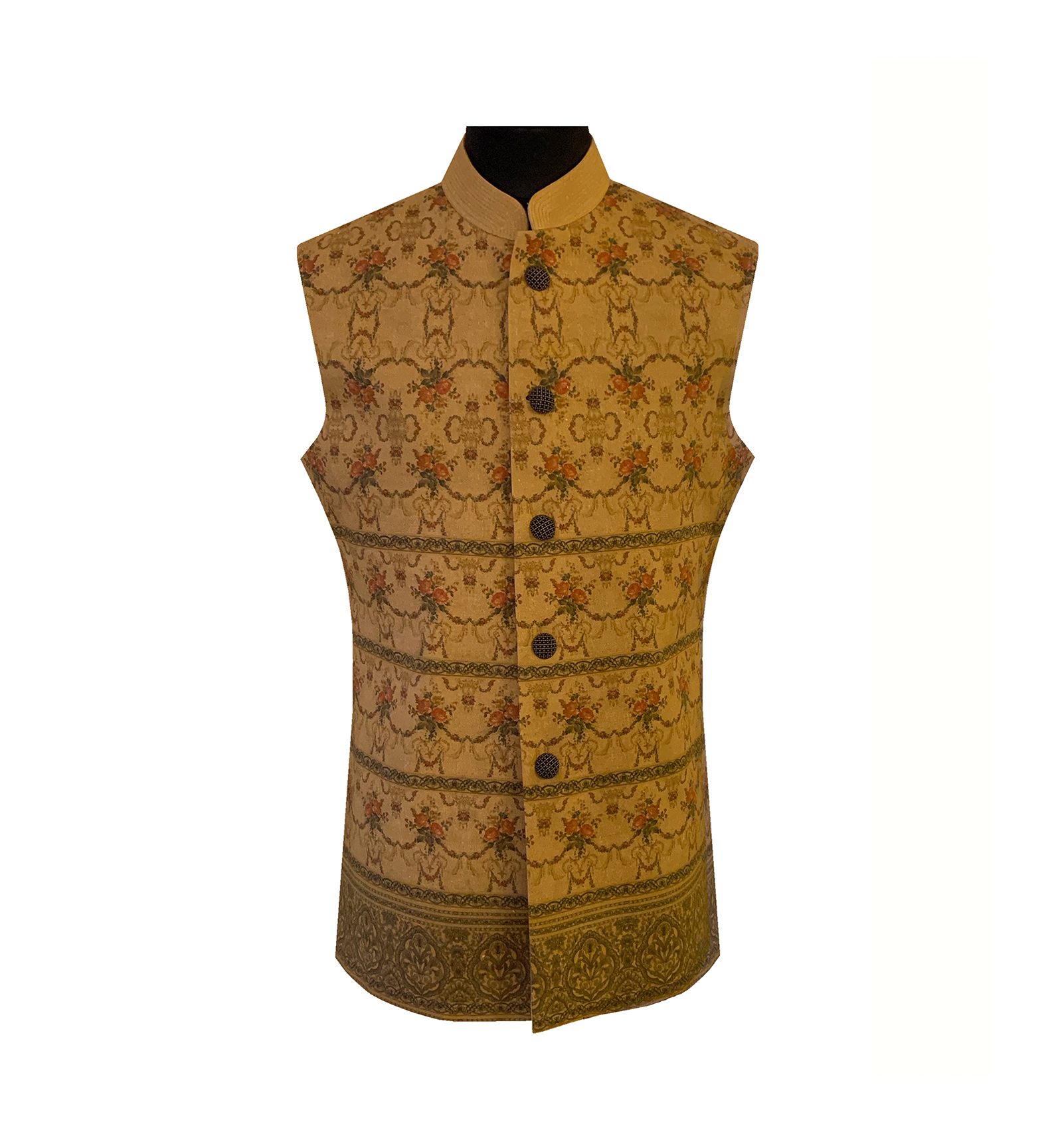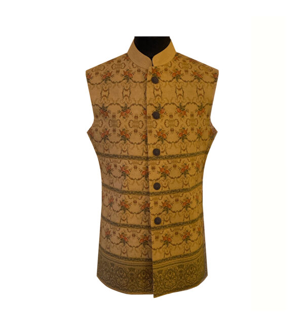 Floral Digital Printed Mens Waistcoat in Cotton Khadi, for a Perfect Traditional Occasion.
